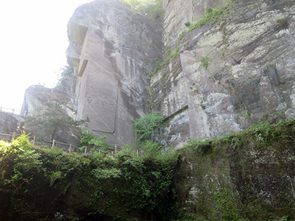 「ラピュタの壁」と呼ばれている石切場跡。垂直面の高さは96mあると案内板に書いていました。大迫力です。スタジオジブリの映画『天空の城ラピュタ』からの愛称だと思うんですが、観たことがないのでなんとも言えません。