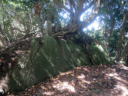 石切場跡みたいな場所で行き止まりです。西の肩はこの岩盤の向こうのはずです。