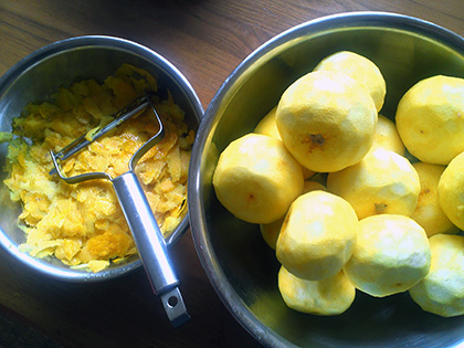 柚子は柚子胡椒づくりに使います。今年で確か3回め。ピーラーで皮を剝きます。