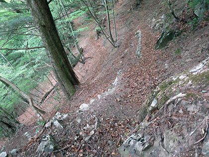 崖を高巻く道だったようです。グーッと下って先ほどの高さに戻ります。