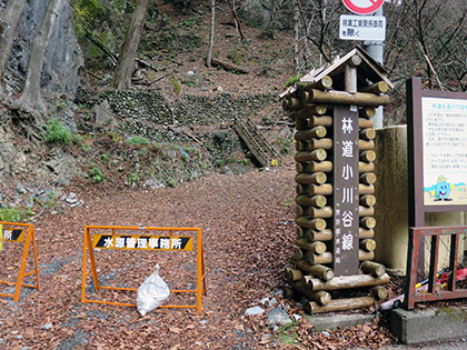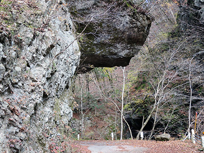 おはようございます。朝二番のバスで奥多摩駅から東日原に到着しました。小川谷橋を渡り、日原鍾乳洞を過ぎて林道小川谷線へ。かろう橋までビューッと歩いたつもりですが、小石に被さった濡れた落ち葉なんかでそこそこ時間がかかってしましました。
