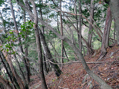 樹木のせいでヤセは感じませんが、ヤセ尾根の急登が続きます。着ヤセ、というやつでしょうか。違うわ。着太りだ。