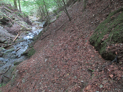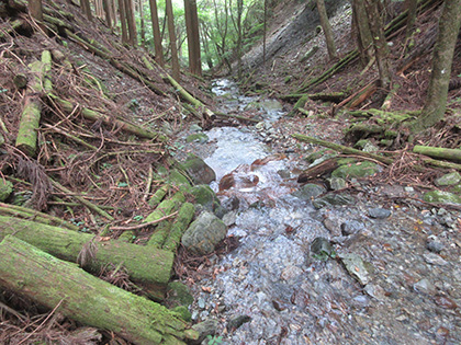 前編の大楢沢二俣中間尾根を下った大楢沢二俣からの沢歩きはこれといった踏み跡はなく、テキトーに下るしかありませんでした。ただ、ワサビ田跡が何枚も残っていて平坦の田の跡や石積の上を楽ちんに歩くこともできました。