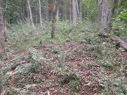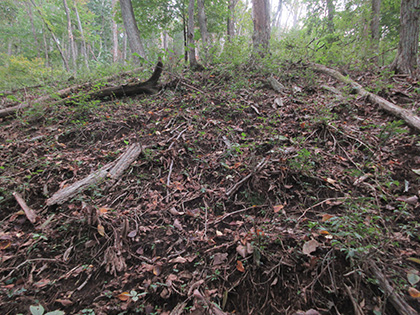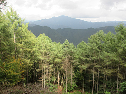 正面に御前山をみながらペットボトルに詰めてきたほうじ茶を飲みます。水分摂取量ががくんと減りました。「いよいよ紅葉の季節、にはまだ早いか」などと独りごちて次の南谷沢二俣中間尾根を眺めようと思ったんですが方角がわかりません。