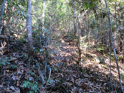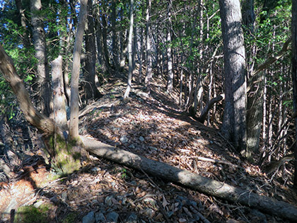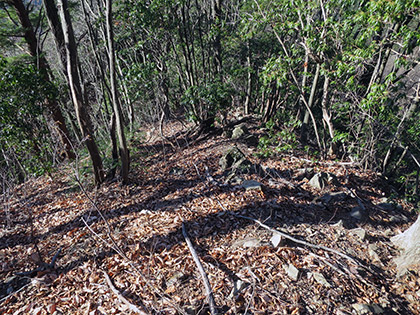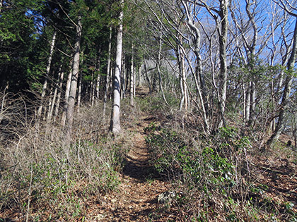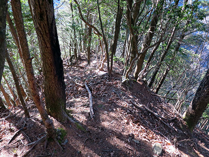 尾根の左に道が延びていますが、ここはビシッと尾根筋を追います。