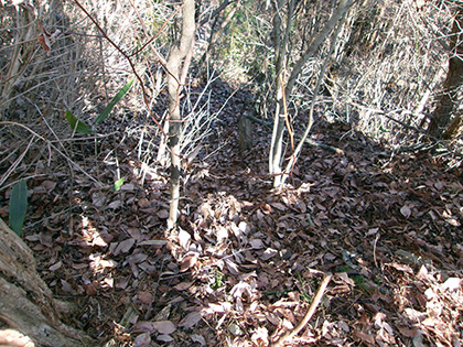踏み跡らしい踏み跡にぶつかりました。たどってみます。トラバース道です。小尾根を越えます。
