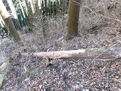 市道山から1時間15分でようやく千ヶ沢林道の終端が見えてきました。地形図の記載と合致しています。