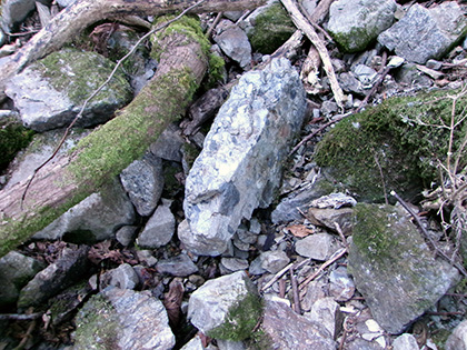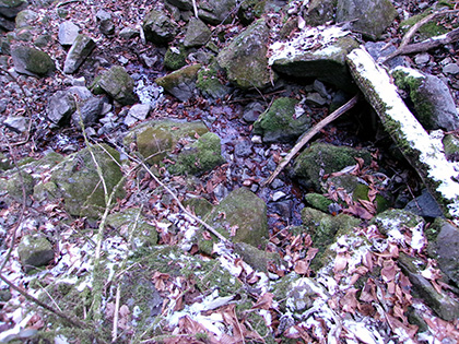 大きめの石が混じったコンクリート片が転がっていました。堰堤か橋台の残骸かもしれません。