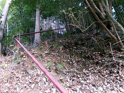 鉄パイプの手すりが付いても急登は変わらず、