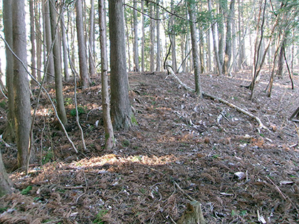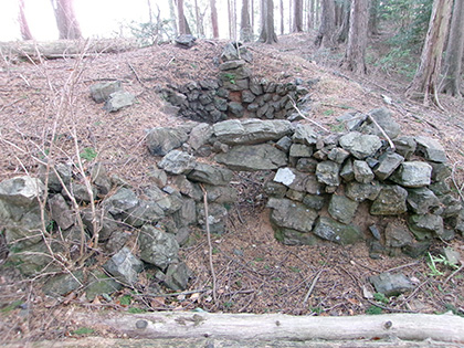 登山道脇の炭焼き窯跡。天井さえつくればすぐに使えそうです。