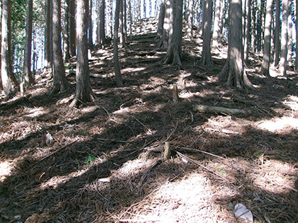『奥多摩』(前出)の131ページにはこの山稜は昔の大嶽山登拝路で、養澤部落からつけられてあつたが、現在は利用する人もなく徒に荊棘のみ生ひ茂らせてゐる