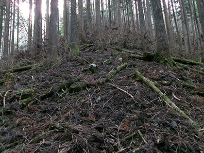 枝打ちされた枝葉が積もっているんですが薄いのでそれほど歩きづらくはありません。