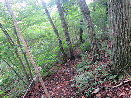 左右の木につかまりながらなんとか下りてきました。坂のきつさはこの写真の7から8倍です。