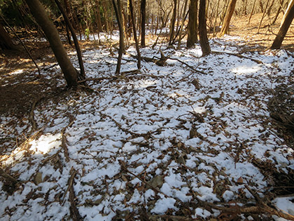 左斜面を覗き込みながらウロウロしますが村村境界線らしき道も境界杭も見つかりません。テキトーなのでしょうか。丹波山村と小菅村には領土問題はなさそうです。