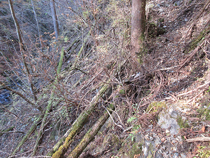 ここから先は右岸は崩落。左岸に移ったんですが、