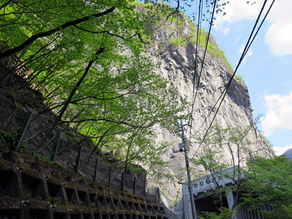 下端から小川谷の眺め。なんだかよくわかりませんが、真ん中あたりに橋が見えています。