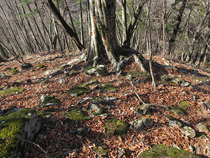 900m圏でヨコスズ尾根西面中腹水平歩道を横断します。
