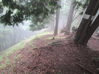 山頂からの景色。なにも見えません、というか白い雲がバッチリと見えています。