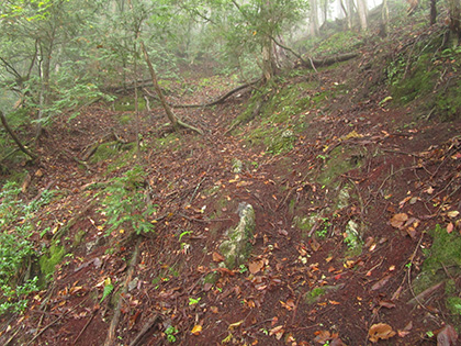 小屋跡のような平坦地を右に見ながら歩きます。