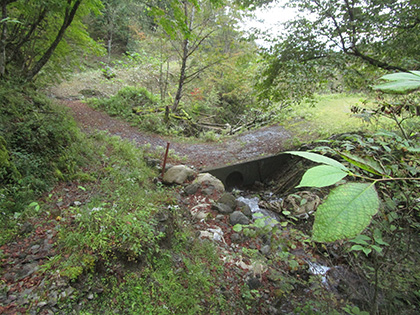 小さな流れを渡ります。対岸にしっかりした道が見えました。