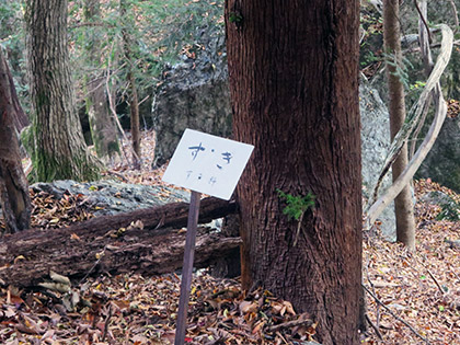 ■小川谷上段歩道→四間小屋窪左岸尾根→(40分)四間小屋尾根1388m標高点→四間小屋尾根→(50分)ウトウの頭→タワ尾根→一石山神社→(1時間50分)[GOAL]鍾乳洞バス停→JR青梅線奥多摩駅