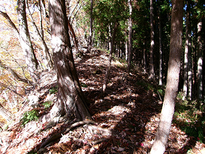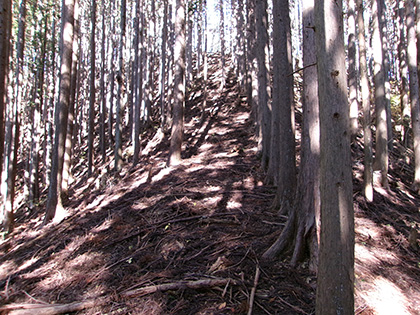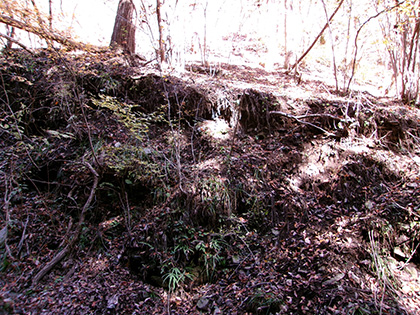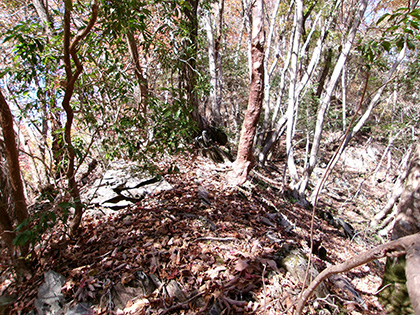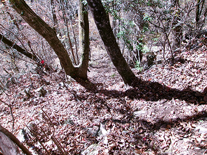 獣かヒトか両方か、法面に崩れかけた踏み跡がありました。登ります。