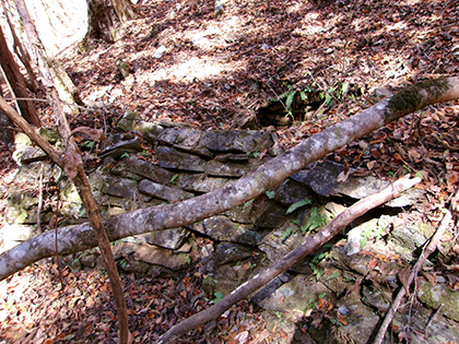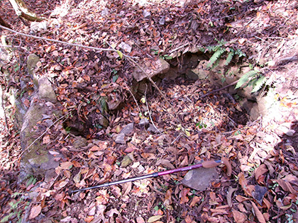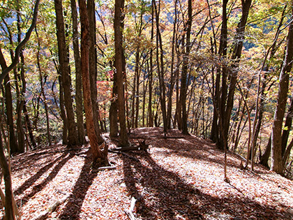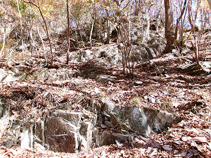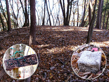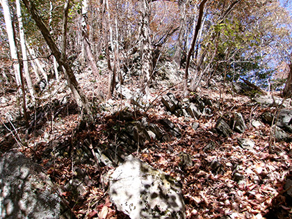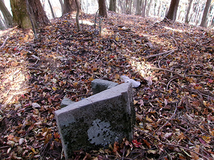 小ピークのてっぺんで石祠が倒壊していました。浅間神社でしょうか。石祠の向こう、写真の奥はトヤド浅間尾根です。ここでトヤド浅間尾根と合流し、
