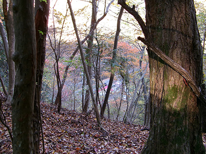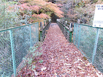 トヤド浅間北尾根は初っ端と檜原街道が近くなった下端部をのぞけばほぼ全行程が急降下でした。ずーっとずーっと急降下で膝の皿の上あたりが鈍痛で薄笑いをはじめました。檜原街道へは滑石橋のたもとに滑らかに着地。