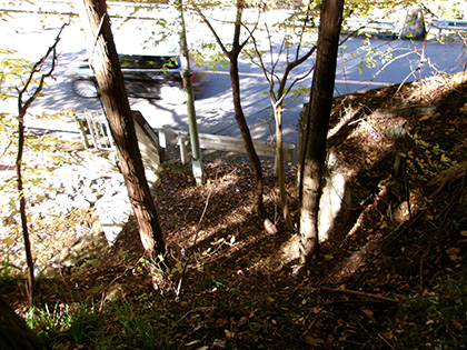 下ります。下端は左右に広がっています。左は橋のたもとへ。