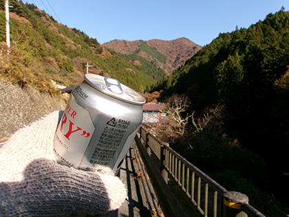 ものは試しと「やまぶき屋(檜原村特産物直売所)」に立ち寄ってみると缶ビールを扱っていました。乾杯!山の神様、地権者の皆様、きょうもありがとうございました。とくに危険な目に合うことなく無事に楽しく尾根歩きを終えることができました。尾根歩きの終わりは、本宿(もとしゅく)役場前バス停にザックを降ろし、近くの「ショッピングストア かあべえ屋」で缶ビールを買ったり、村役場のトイレを借りたり、のんびりバスを待ちました。