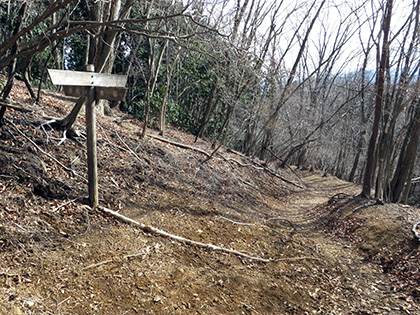 道標が指す鳩ノ巣駅方面。この方向へ尾根を歩く。