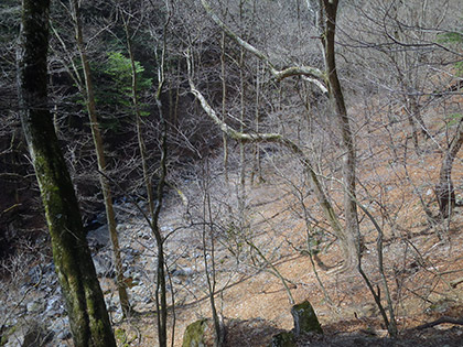 小川谷を見下ろしながら落ち葉の積もった山道を進み、