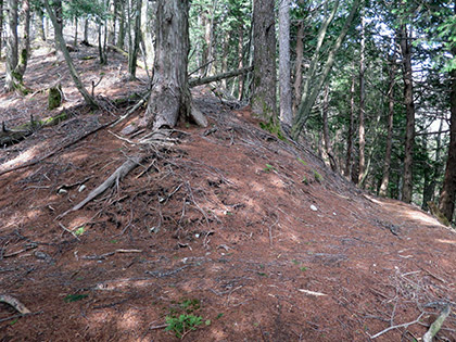 ちょっとなだらかになり、足元はザレからやわらかい土になりました。