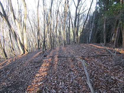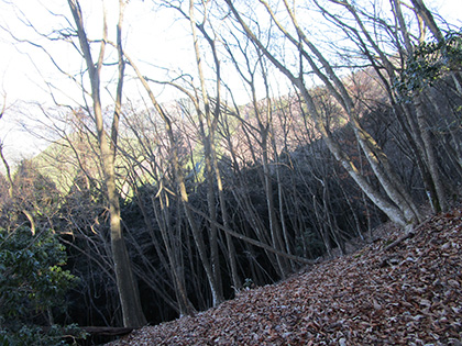 超弩級の急降下です。幸い、間伐された木が足がかりになります。じんわりじんわり下っていきます。