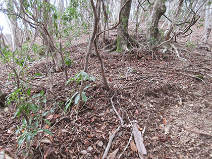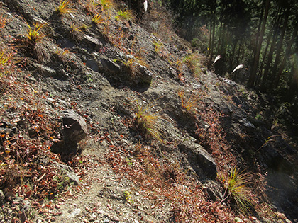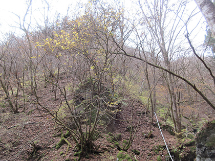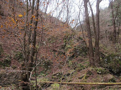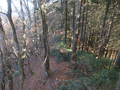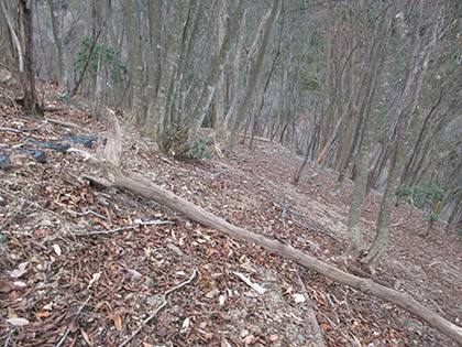 かなりの急勾配ですが獣が落ち葉を蹴散らした跡に助けられました。