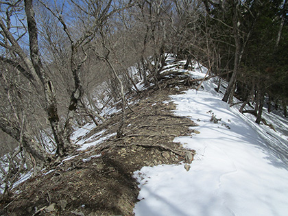 滝入ノ峰を過ぎるとヤセ尾根が続きます。