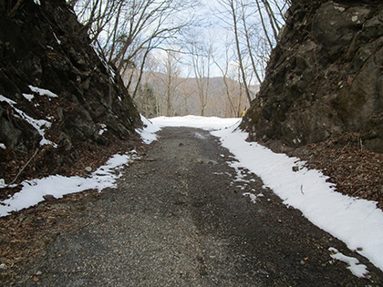 切通を通って向こうに回り込んでみます。このままずーっと林道を歩けば大平山直下の大クビレに着くはずです。
